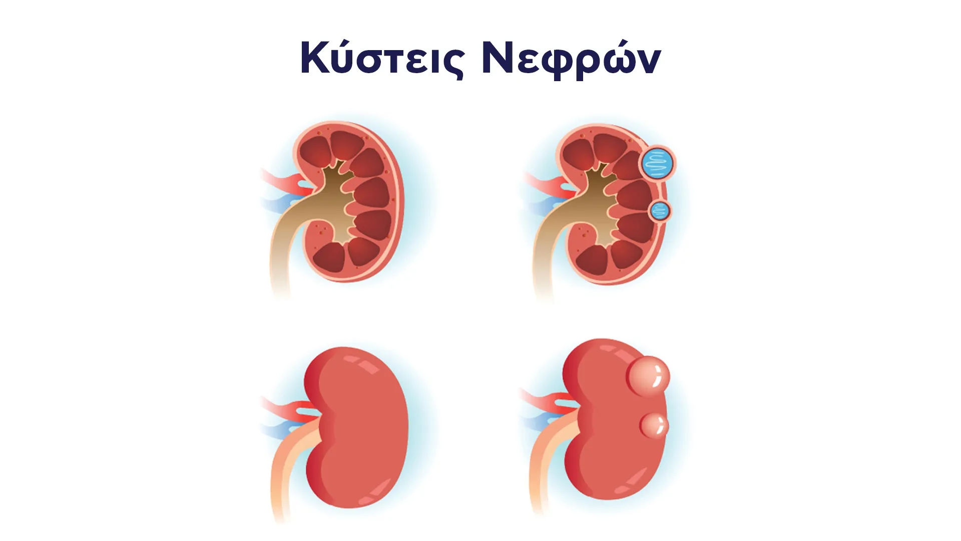 Οι κύστεις νεφρών είναι γεμάτες με υγρό σχηματισμοί που αναπτύσσονται στην επιφάνεια ή μέσα στους νεφρούς. Χωρίζονται σε δύο βασικές κατηγορίες: